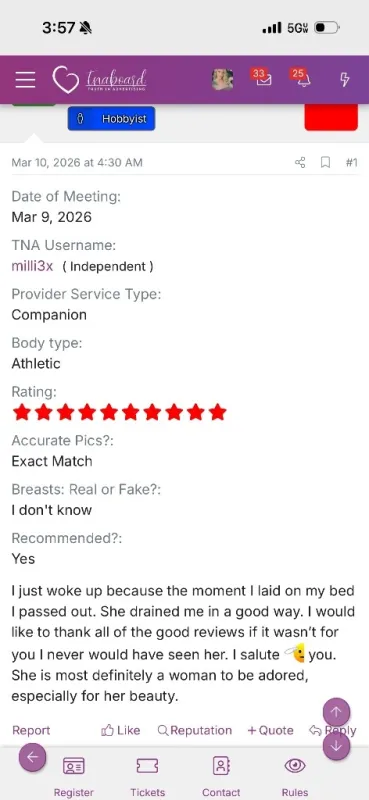 I'm Millie 😈 What you can expect from ME: 🌟100% attentiveness 🌟On time 🌟Great hygiene 🌟NO judgment And what I expect from YOU: Just be a gentleman No BB/Greek under ANY circumstances 🌹 Donations QV ………… 200 roses Hh ………… 300 roses Hr ………… 500 roses 2 hours … 1000 roses Outcall available for one hour or longer. SCHEDULING ‼ Important, please read ‼ When scheduling, TEXT me FIRST— send a quick text with your handle, the time, and how long you’d like to stay 🚫Any disrespect = blocked Please just be a gentleman. Content also available to purchase 🥵 Can’t wait to hear from you 💋 -TNA handle: milli3x to read my reviews ❤🔥 -OF: milliannexxx