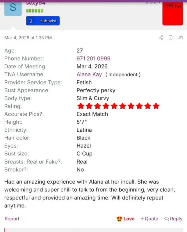 Hey, I'm Alana Kay 💕 Discover the epitome of elegance and charm with me, a stunning Exotic Latina beauty! Standing at 5'6 with captivating curves, 🍑 I exude allure at every turn... Beneath my enchanting exterior I radiate kindness and compassion. With a brilliant mind and a passion for knowledge, I love to engage in stimulating conversations that spark your intellect and leave you craving more. Don't miss the chance to experience the magic of my presence - I'm not just a woman, I am also an unforgettable experience waiting to be discovered! So what are you waiting for🥰 ✨Incall & Outcall available ✨ I am verified on ALL platforms, tryst, PD & TNA 😁 100% REAL & current pictures, no extra pics sent. ✅Screening REQUIRED 🚫NO explicit texts 🚫NO negotiating 🚫NO QV Up late & up early ☀ Good HYGIENE is a MUST! Let Me Know What Site You Found Me On ⭐Text ONLY 971-2O1-0999 ⛓Fetish friendly Incall:Hh & hr or longer outcall: Hr minimum no HH